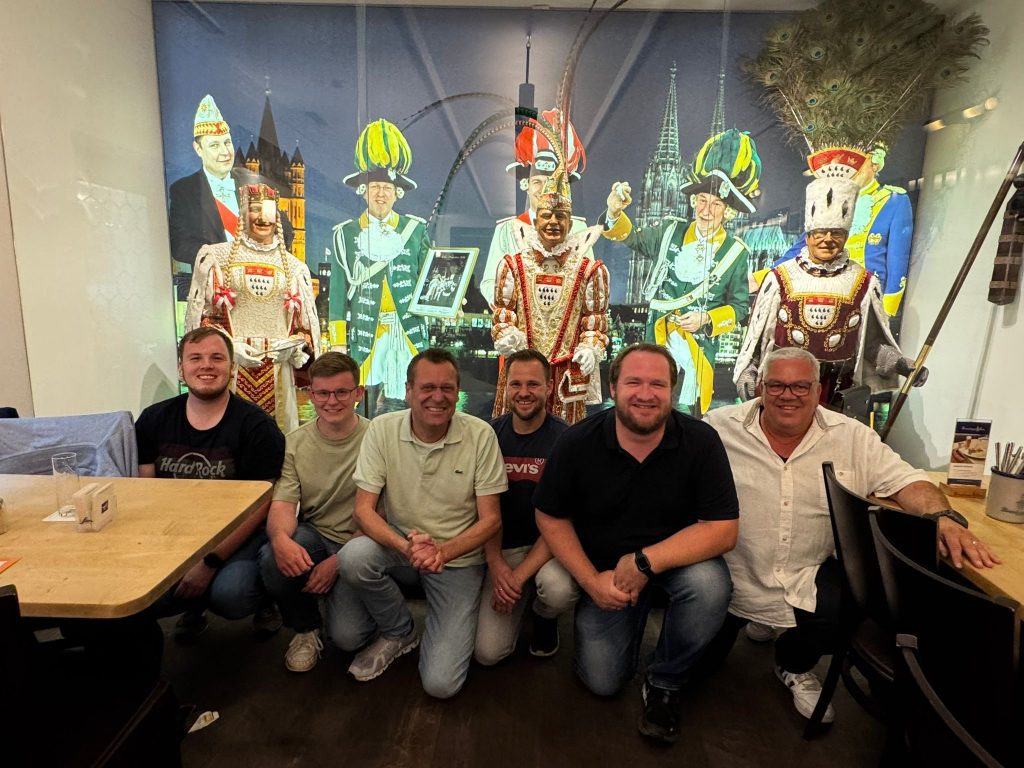 Unser Bühnenteam um Literat Benedikt Kadenbach und Elferratspräsidenten Markus Krapf startet traditionell mit einem gemeinsamen lockeren Abend in die Vorbereitungen der Session. Köln ist da natürlich ein beliebtes Ziel. Da wurde gleich die Maus besucht, die nach dem Attentat auf sie nun wieder genesen in der Kölner Fußgängerzone vor dem WDR-Haus steht. Die veilen Pflaster haben ihr geholfen!